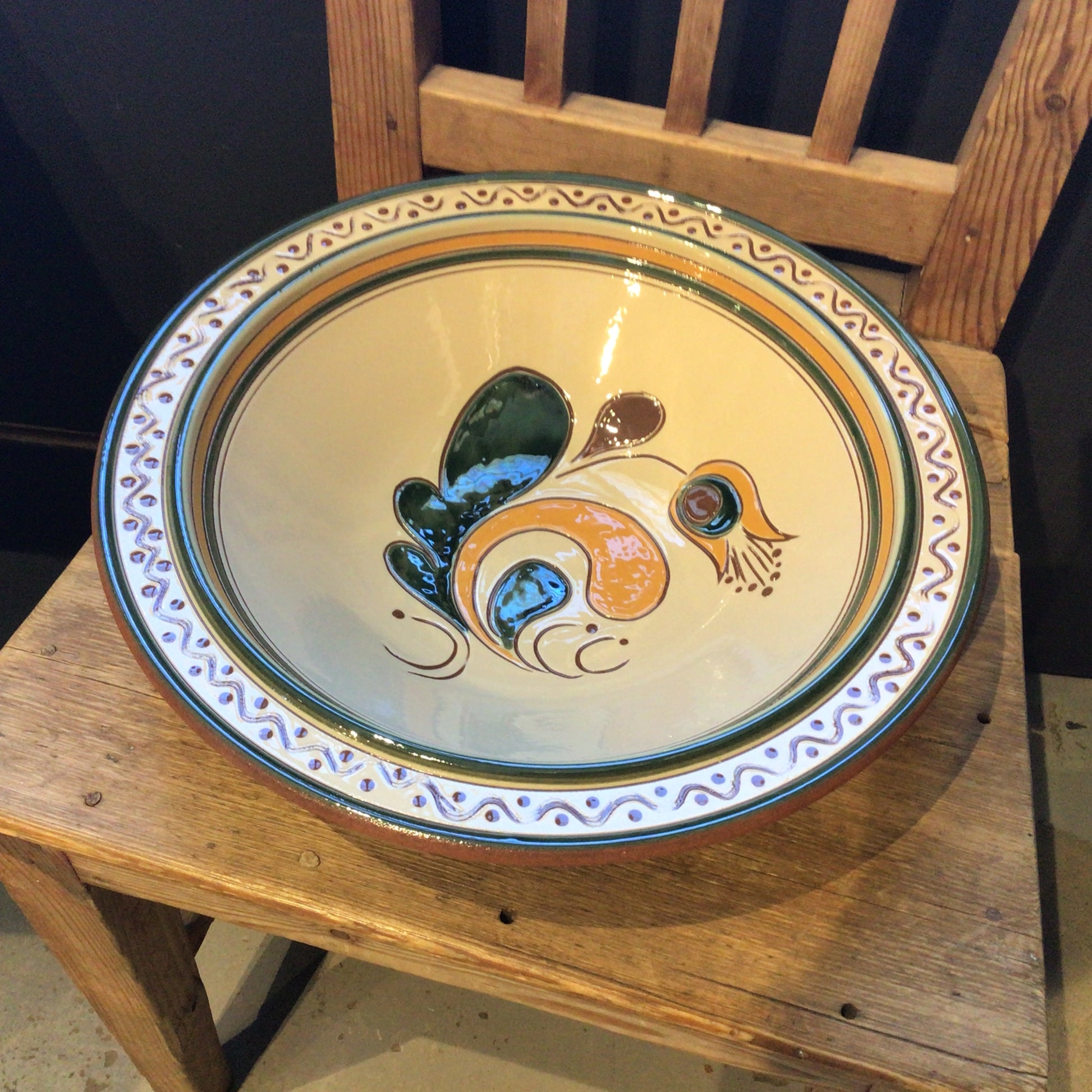 Karmfat var et felles matfat for familien. Karmen var til for å skrape skjea. Høydekorerte gjenstander som dette var ofte brukt bare i spesielle anledninger og var et tydelig skryteobjekt som resultat av klassisismens strømninger som preget Trønderkeramikkens storhetstid.