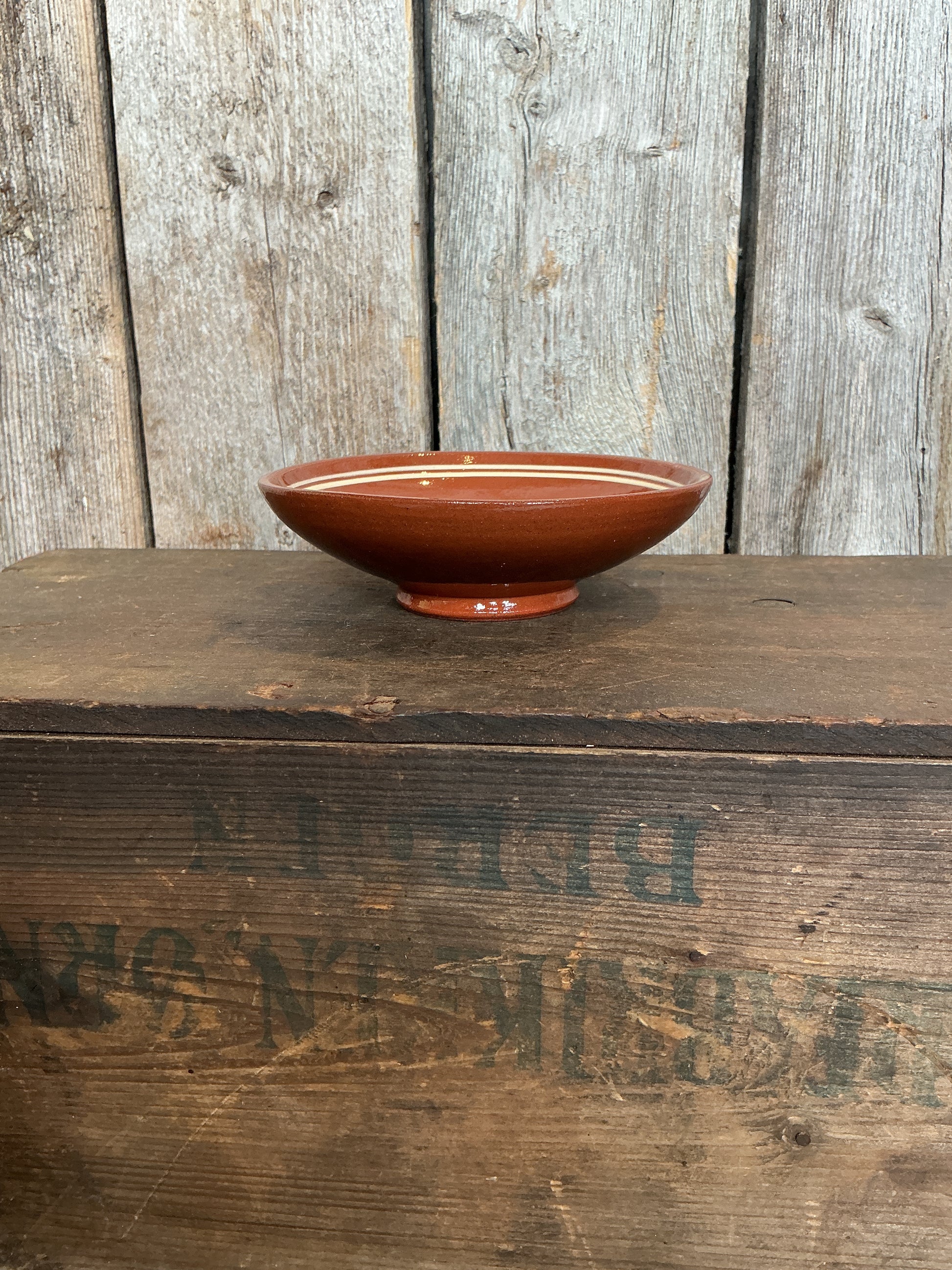 Brunfargen er den naturlige leirefargen forseglet med et tynt lag gjennomsiktig glasur og bestemmes av temperaturen under brenning og vill derfor kunne variere. Stripene legges på med ei øresprøyte og består av flytende farget leire, også kalt begitning. Dette gjøres mens godset er lærhardt.
